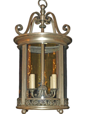 Very fine gilt bronze lantern with beveled glass panels and oak leaf garlands