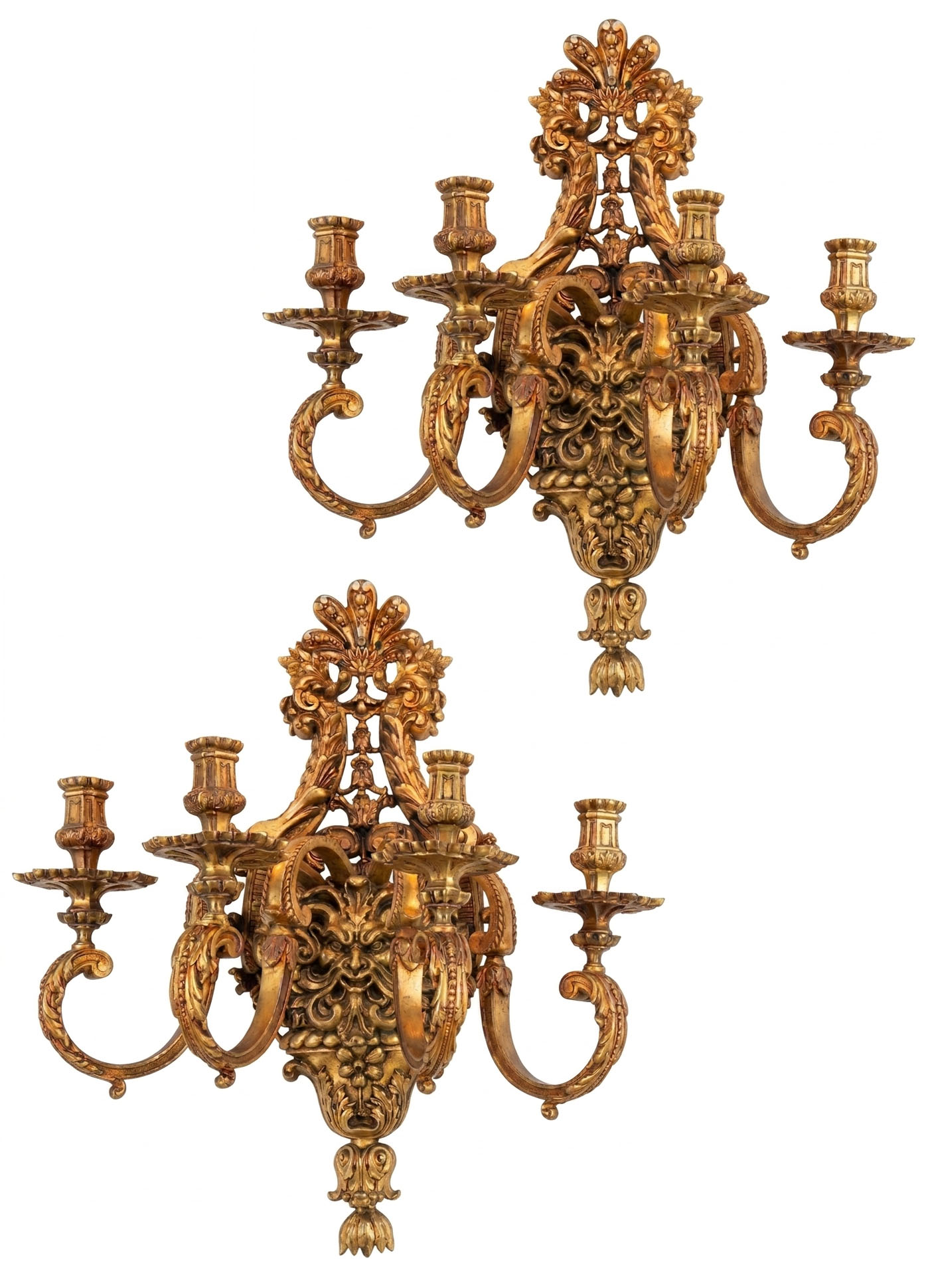 A Very Fine Pair of Gilt Bronze Wall Sconces in the Regence taste