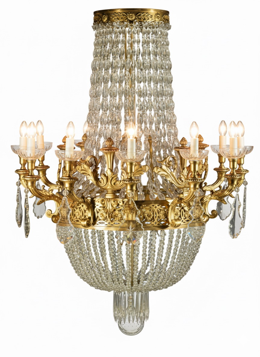 The pierced central circle issuing twelve scroll single arms and six ornamental finials.