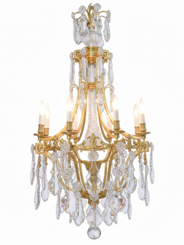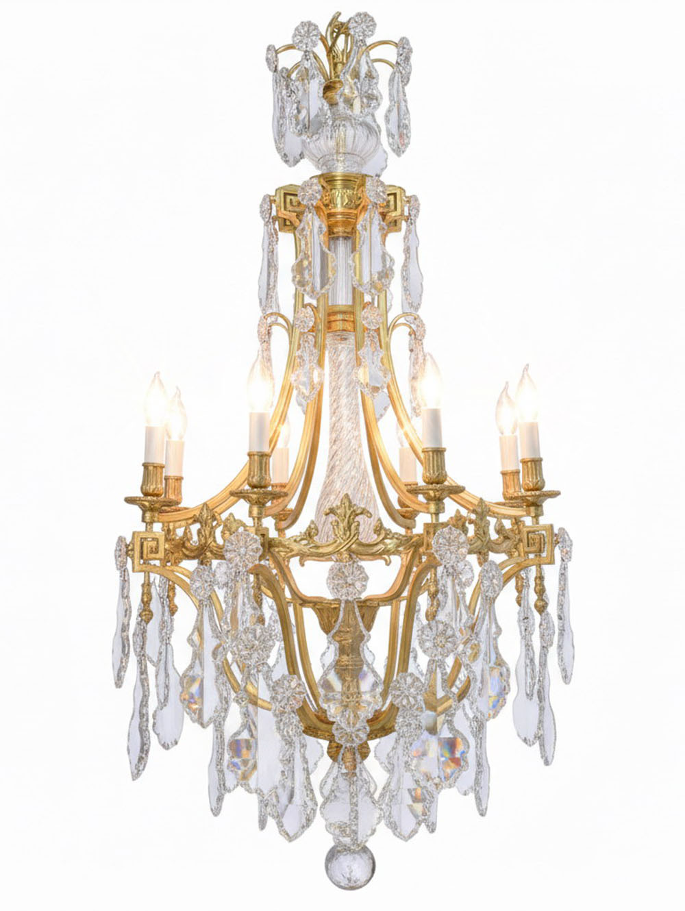 Very fine gilt bronze and crystal eight-light chandelier by Baccarat.