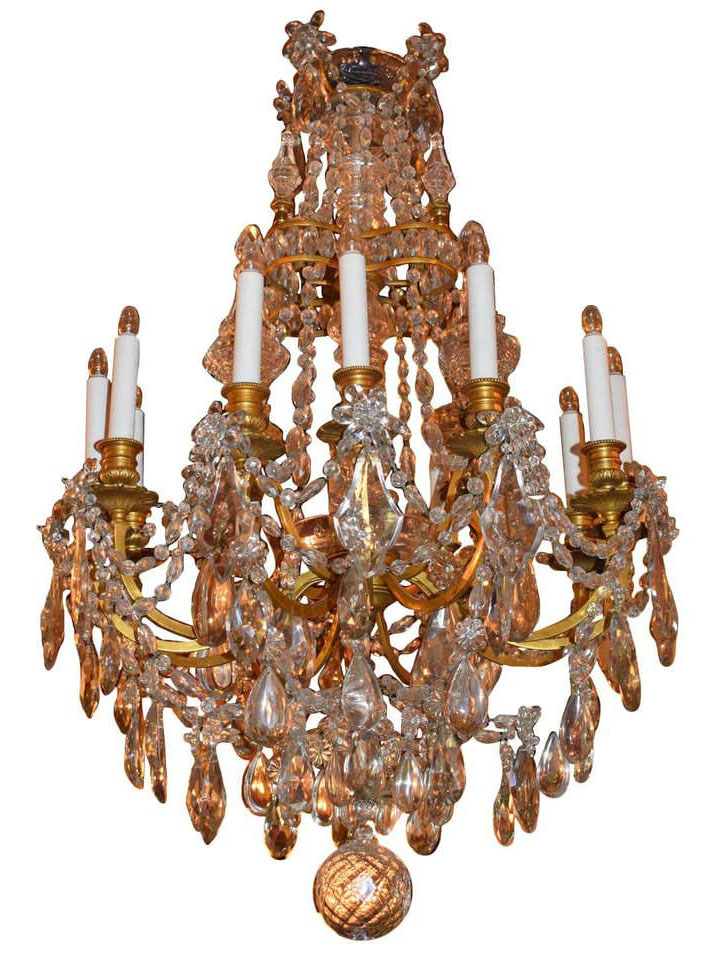 Baccarat chandelier of gilt bronze and crystal in the Louis Philippe style