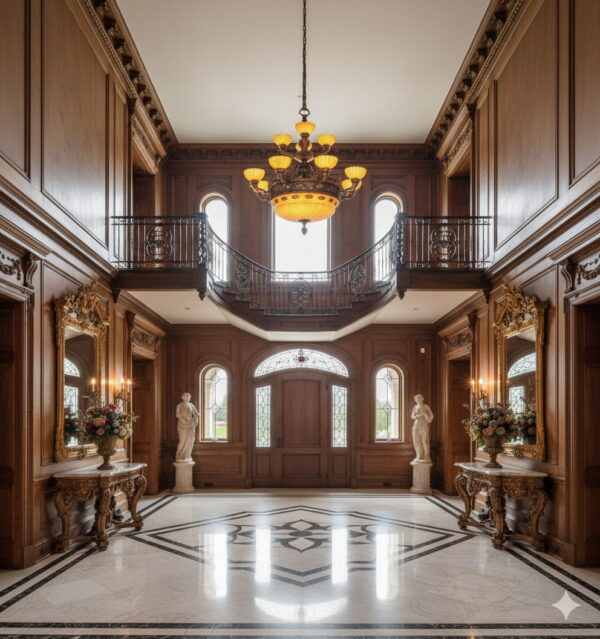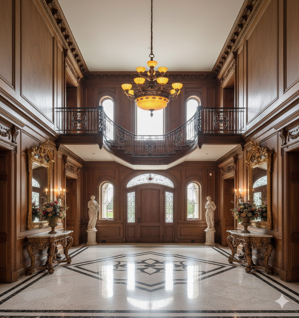 An Exquisite Bronze Chandelier of Great Quality featuring hand carved Alabaster Dome & Shades.