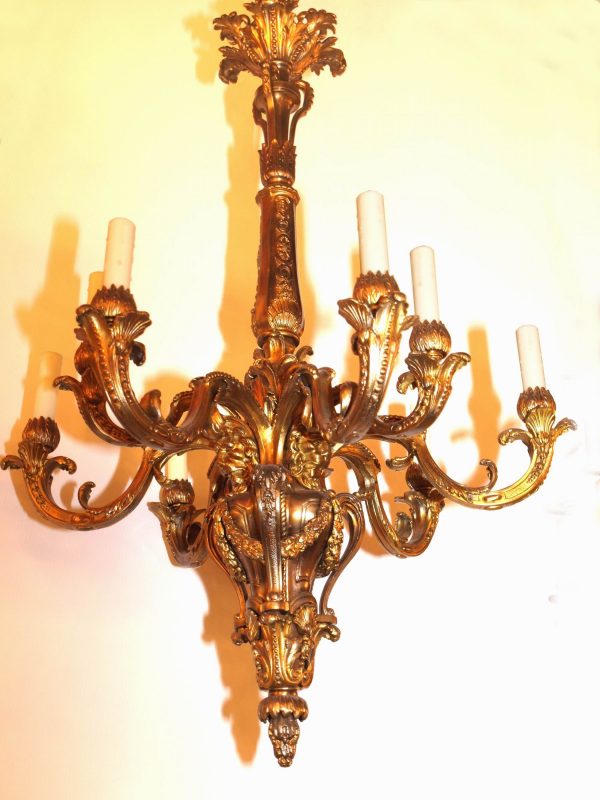 Superb gilt bronze French Regence style chandelier with 10 lights