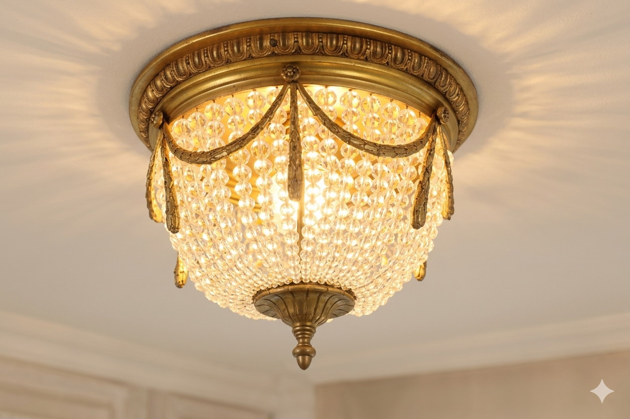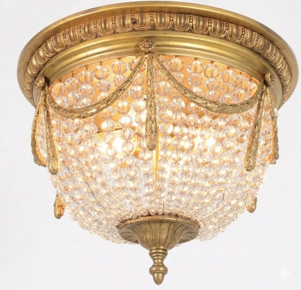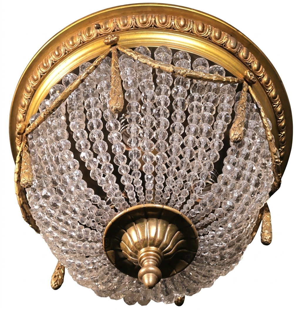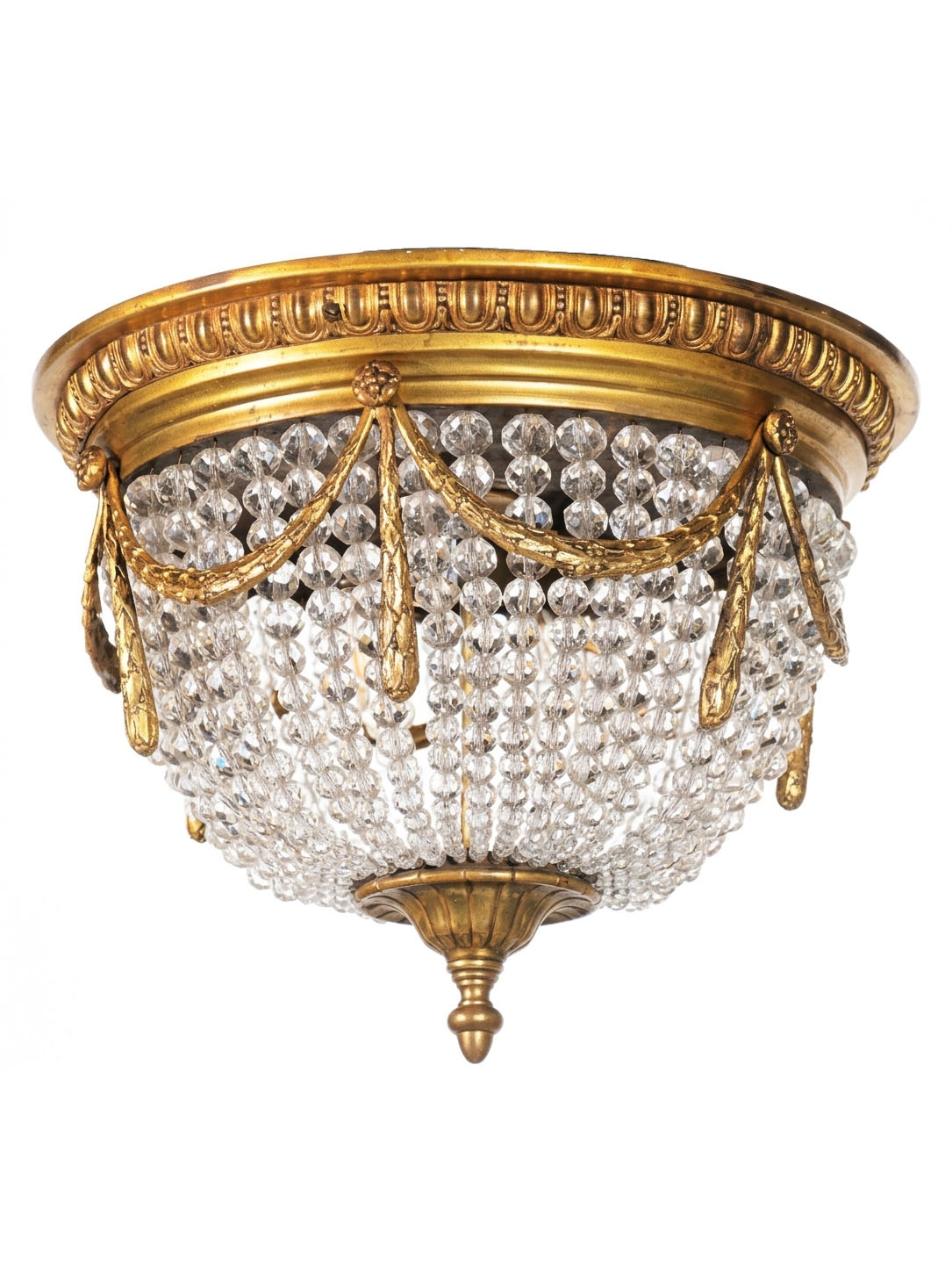 A Very Fine & Elegant Gilt Bronze & Crystal Pendant in the Louis XVI taste. 3 lights. France, circa 1910.