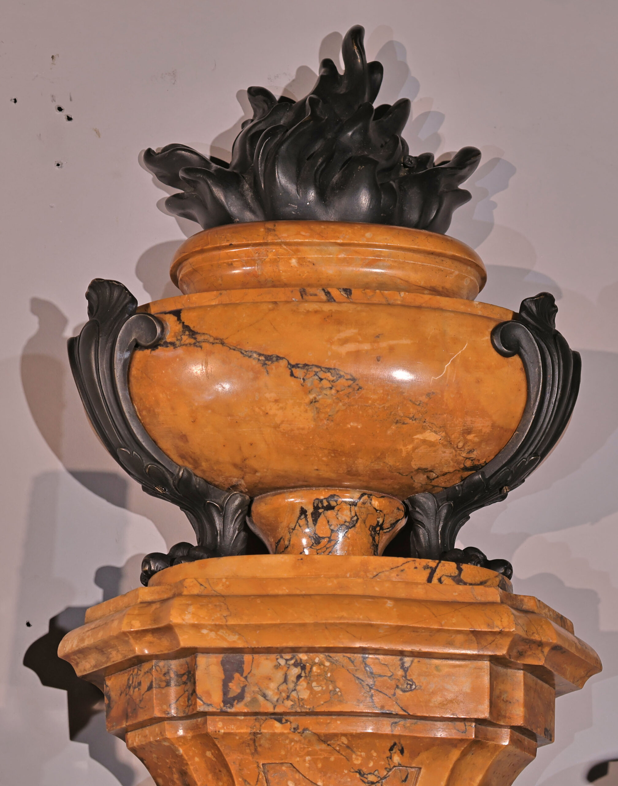 Great Quality bronze work, the marble of intense color and exquisite veining.
