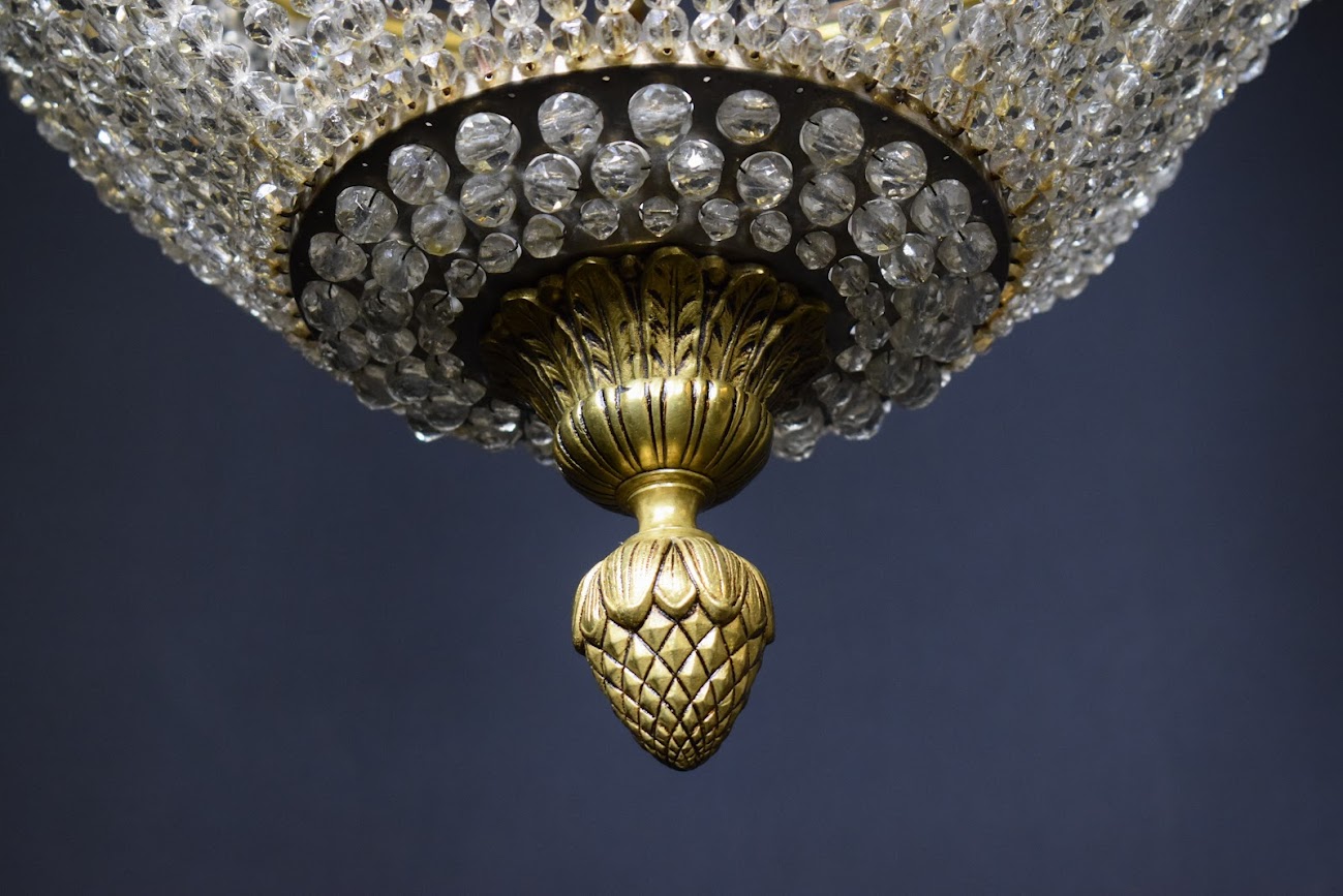 Very fine and elegant chandelier, gilt bronze frame with graduated strands of faceted beads.